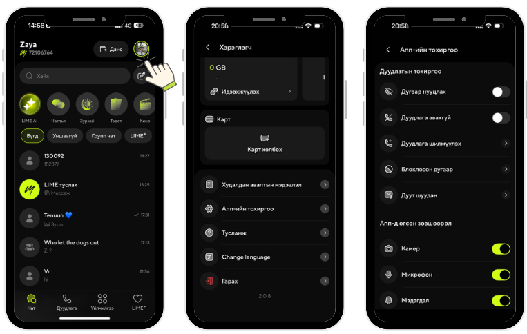 3. "Апп-ын тохиргоо" хэсэгт дараах дуудлагын тохиргоог хийх эсэхийг хэрэглэгч шийднэ.