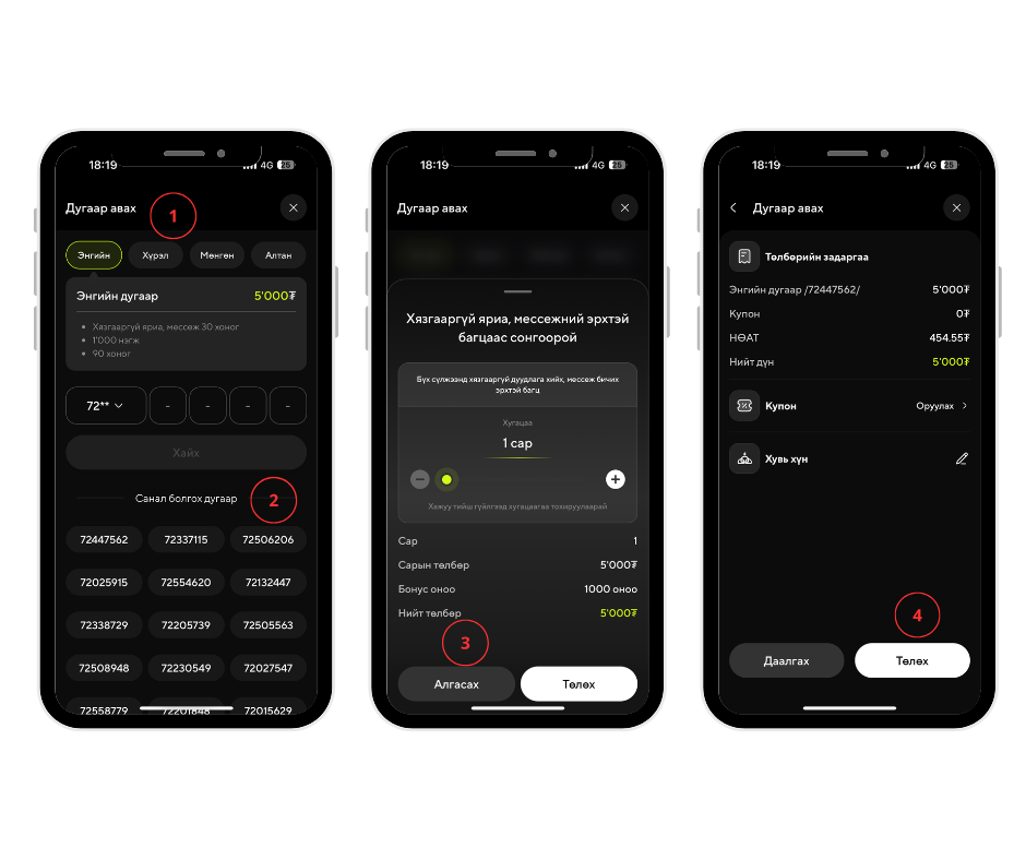 Төлбөр амжилттай төлөгдлөө гэсэн мессеж ирэх бөгөөд та дугаар ашиглахын тулд хувийн мэдээллээ баталгаажуулаад дугаарыг ашиглах эрхтэй болно.