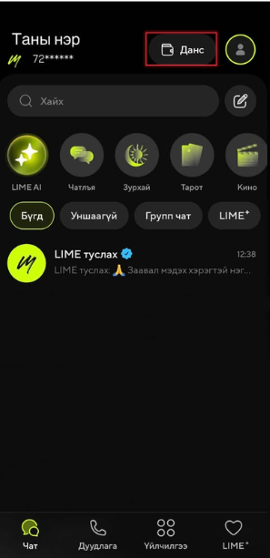 1. Апп-н нүүр хэсэгт байрлах "Данс" цэс дээр дарна.